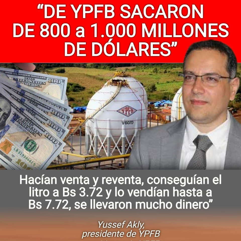 “De YPFB sacaron de 800 a 1.000 millones de dólares”. Corrupción. “Por venta y reventa de combustibles”.