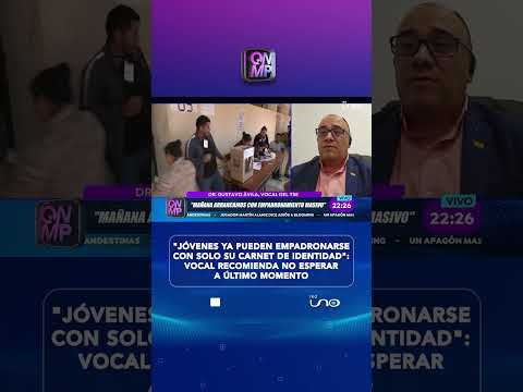#Nacional | Gustavo Ávila, vocal del TSE, recuerda a los jóvenes que pueden empadronarse desde mañana hasta el 16 de diciembre y detalla los pasos para garantizar su participación en las elecciones.