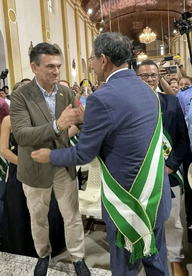 Con el alcalde de Porongo. Sonrisa compartida. Manos estrechadas. Abrazo. Fue hace instant