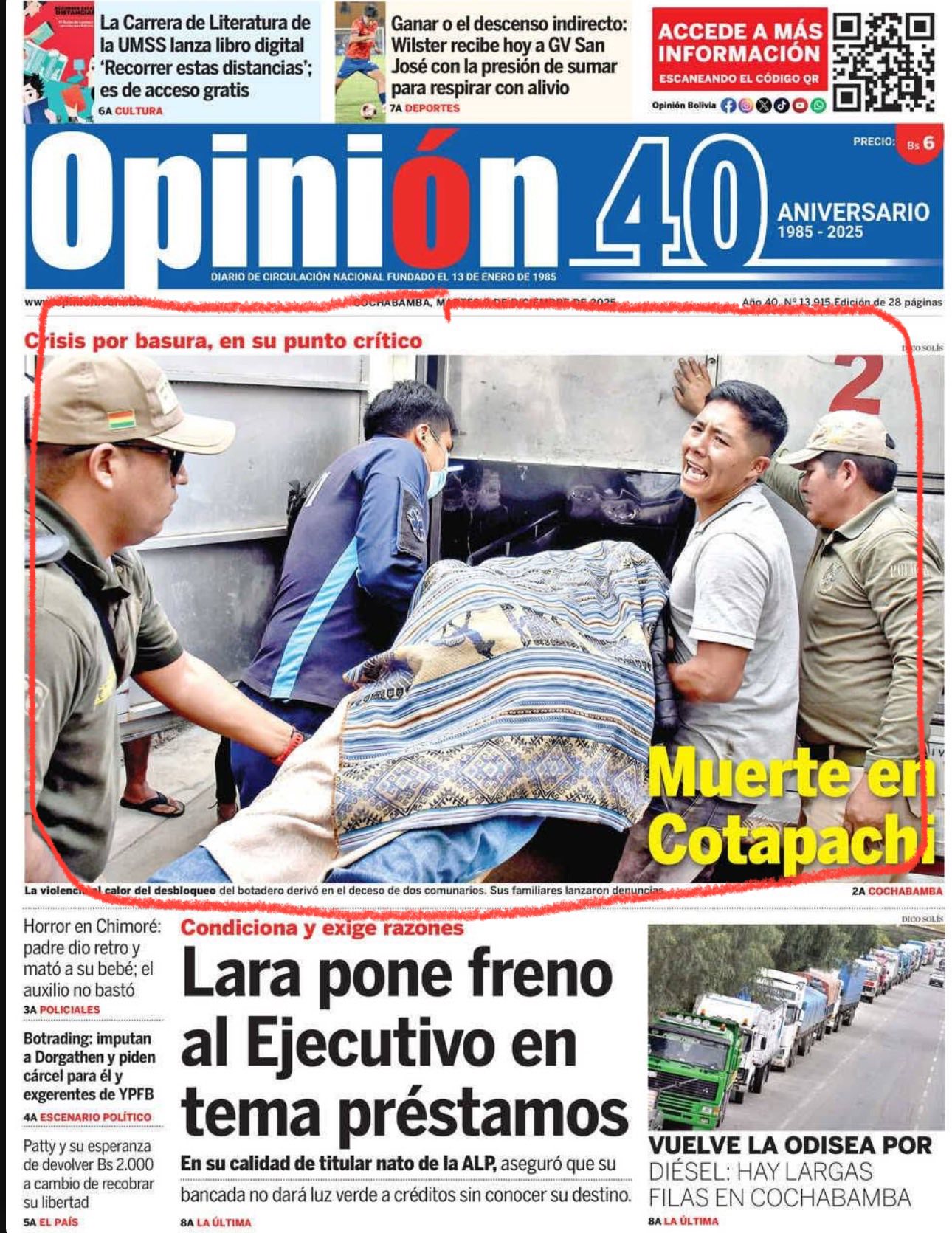 Dos muertos en primera página. Dos muertes que necesitan ser explicadas al país. Dos muertes que duelen. Y dos muertes que ya se están usando políticamente.