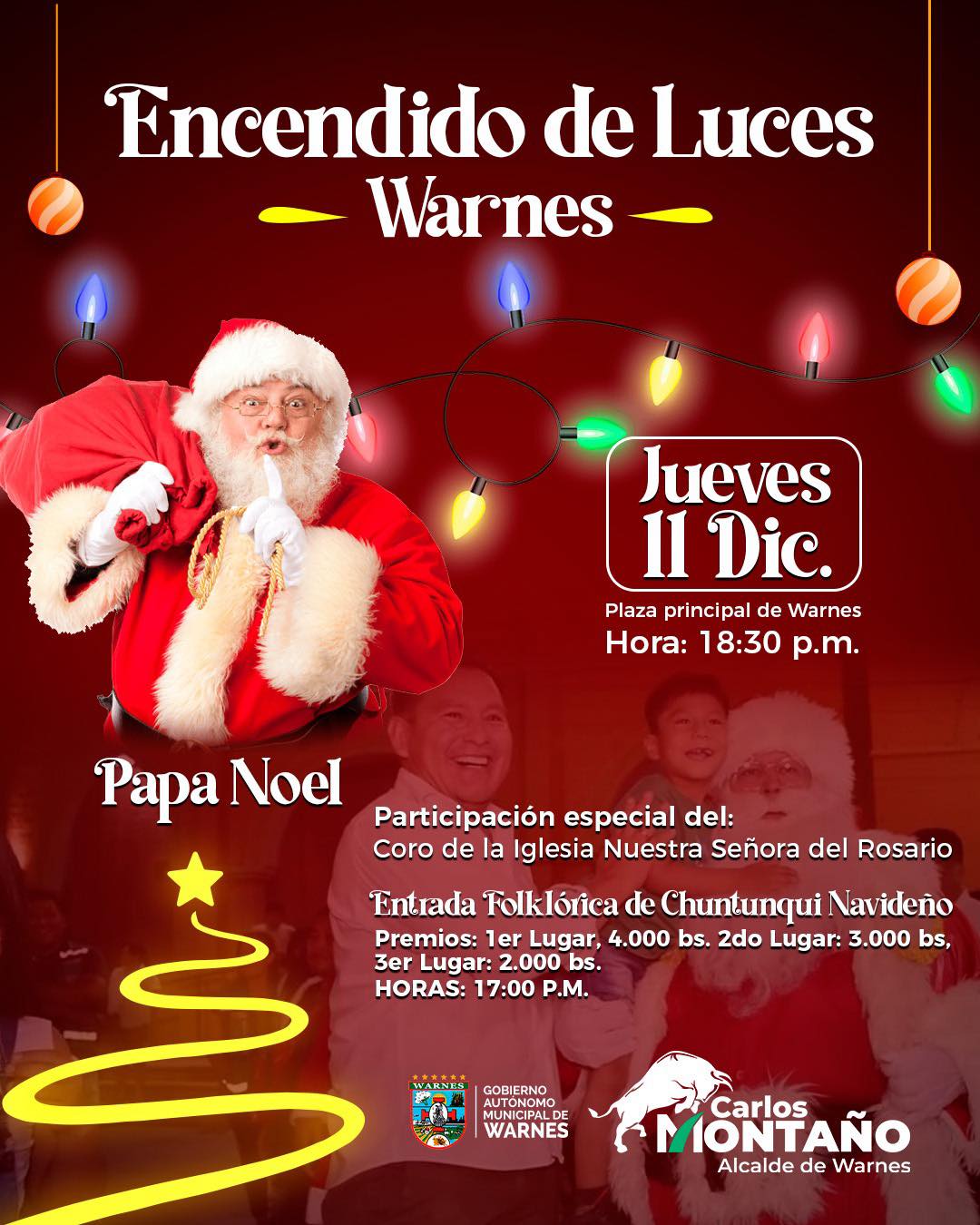 Este jueves 11 de diciembre, a las 18:30 p.m., te esperamos en la Plaza Principal de Warnes para vivir juntos el gran Encendido de Luces Navideñas.