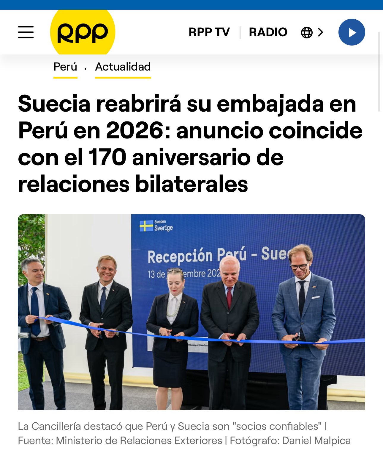 Se van de Bolivia. Y abren en Perú. Suecia cierra su embajada en Bolivia. Y abre su embajada en Perú. ¿Qué pasó?