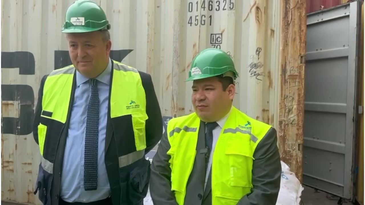 Fiscal General del Estado Plurinacional de Bolivia, Roger Mariaca Montenegro, junto al Fiscal Nacional del Ministerio Público de Chile, Ángel Valencia Vásquez, visita el Puerto de Arica con el objetivo de fortalecer la lucha contra el narcotráfico.