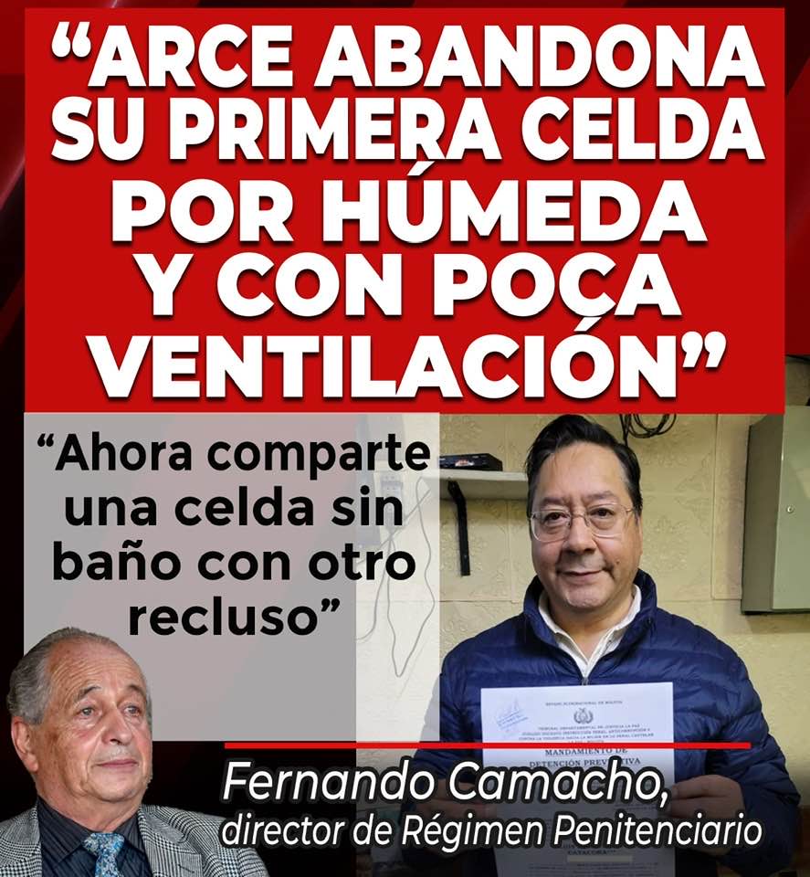 Así ha cambiado la realidad de Luis Arce. De su despacho en la enorme y moderna casa Grande del Pueblo a su pequeña, húmeda y mal ventilada celda en una hacinada prisión.