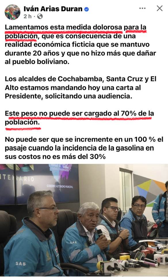 Es lo que escribe el alcalde de La Paz, Iván Arias.