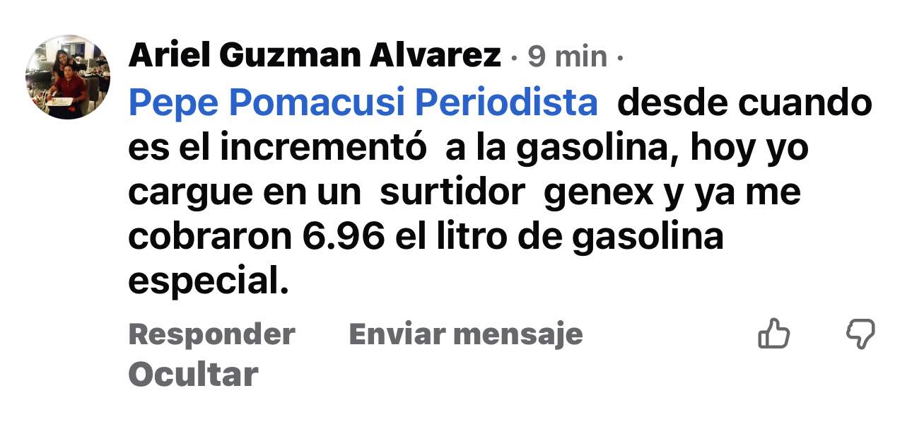 Reportan que Genex ya vende gasolina a Bs 6.96 el litro.Categorías NoticiasEtiquetas , Facebook, Pepe Pomacusi Periodista 18/12/2025 Fuente: Pepe Pomacusi Periodista