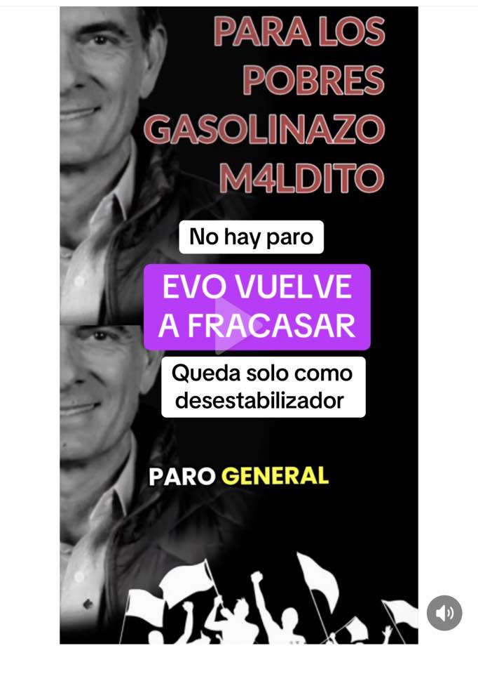 Evo vuelve a fracasar. Intentó usar el levantamiento de la subvención. Intentó desestabili