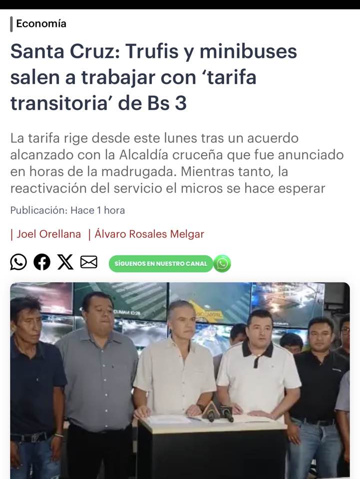 Trufis y minibuses vuelven a trabajar. Firmaron acuerdo esta madrugada. Cobraran Bs 3. Se evitó el paro.