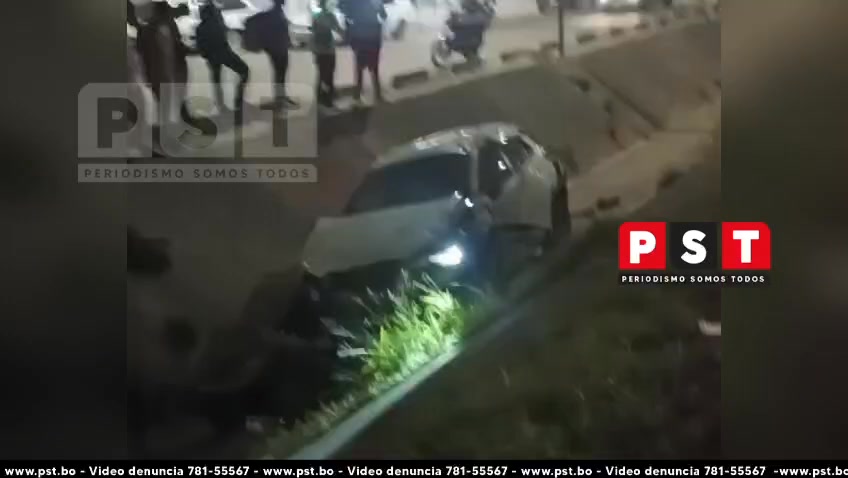 Un accidente de tránsito se registró la madrugada de este domingo en la avenida Bolivia, entre sexto y séptimo anillo, en la zona de Los Lotes, donde un vehículo se llevó parte de la baranda de un puente peatonal y un poste de alumbrado público.