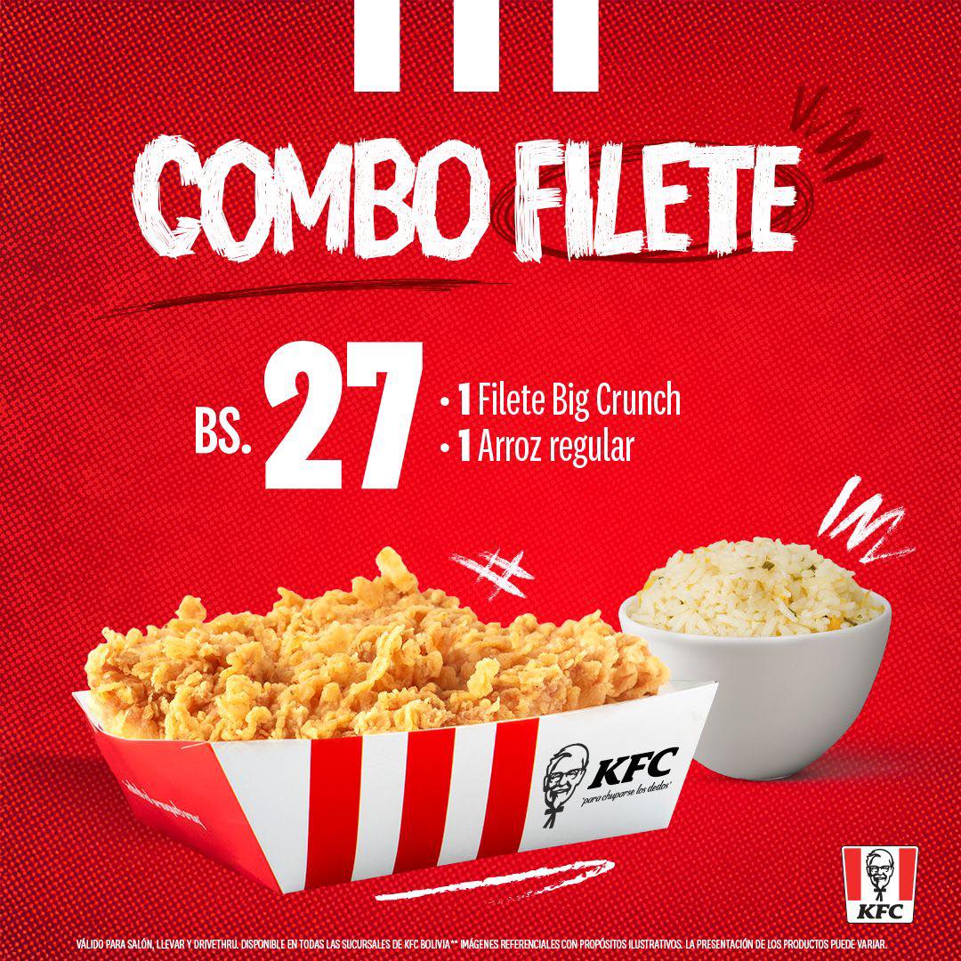 Un filete Big Crunch, crocante por fuera y jugoso por dentro + arroz regular por 27 Bs.