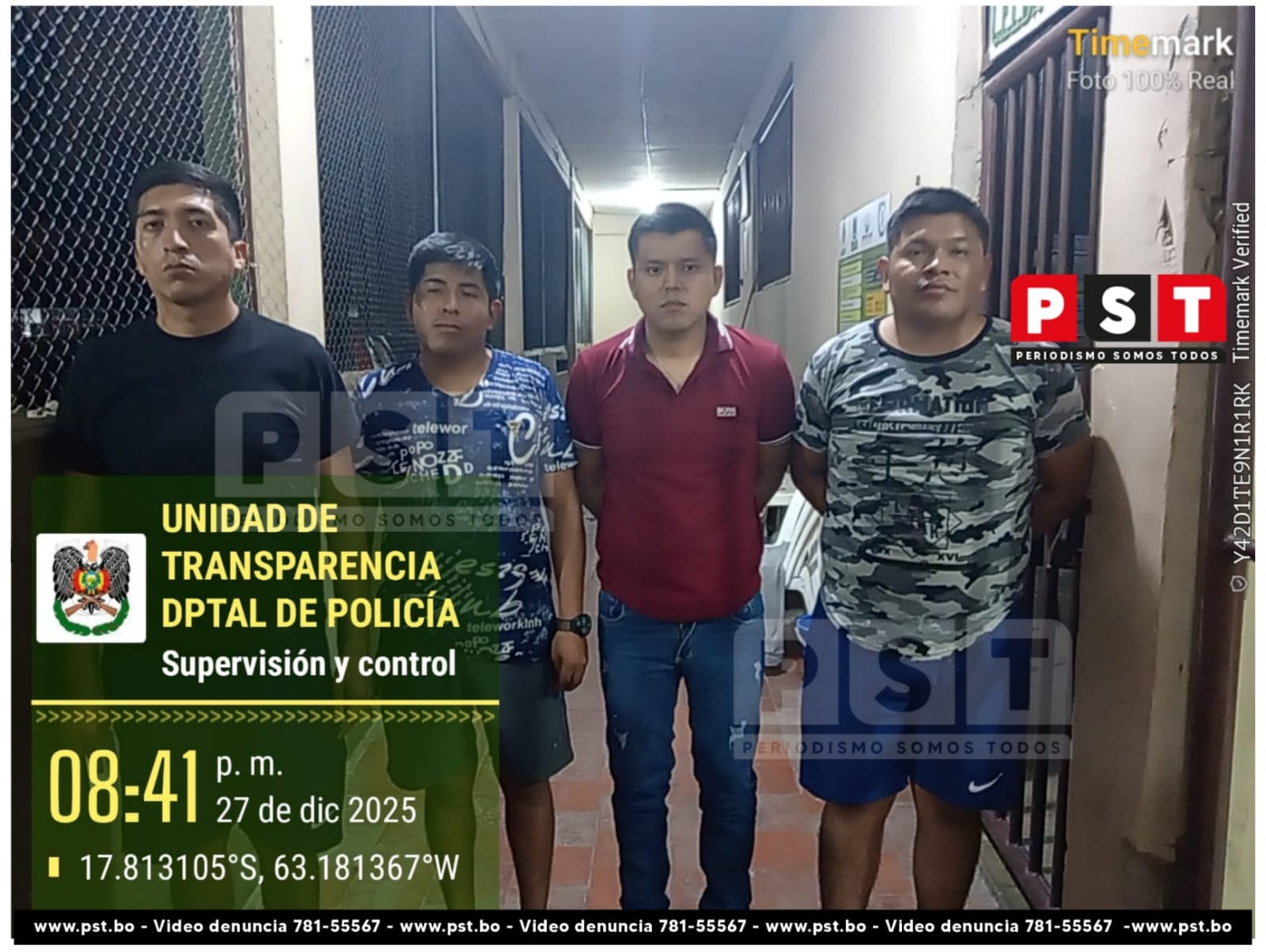 Cuatro policías de la EPI 8, en la zona de Tusequis, fueron aprehendidos tras ser denunciados por presuntamente solicitar dinero a un conductor durante un operativo de control. De acuerdo con las primeras indagaciones, los uniformados interceptaron al hombre bajo sospecha de consumo de alcohol; no obstante, al obtener un registro mínimo en la prueba de alcoholemia, habrían cambiado el argumento e indicado una supuesta “falta de respeto a la autoridad” para exigirle alrededor de dos mil bolivianos a cambio de dejarlo en libertad.