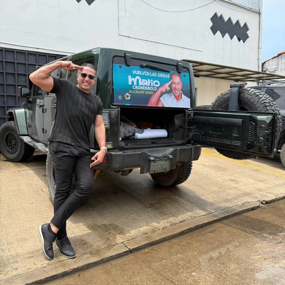 Mario Cronembold, campaña sobre ruedas. Pisa el acelerador a fondo. Va adelante en la carrera por la alcaldía de Warnes. Y corre como si estuviera último. Más casas de campaña, más marketing político, más energía.