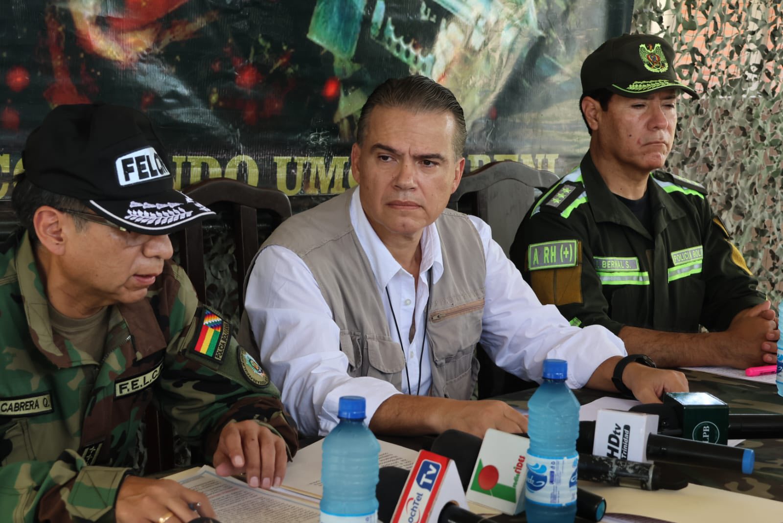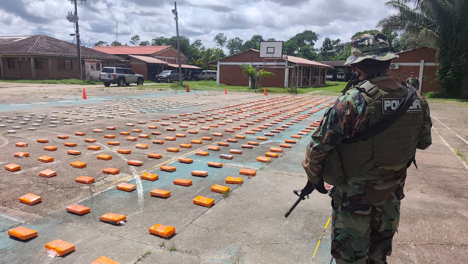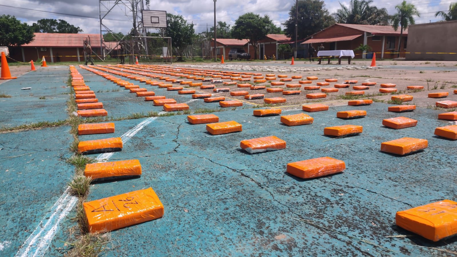 600 kilos: golpe al narcotráfico. Fue en el Beni. El zar antidrogas Ernesto Justiniano se desplazó junto con la Felcn. Se llenan canchas deportivas con tanta droga.