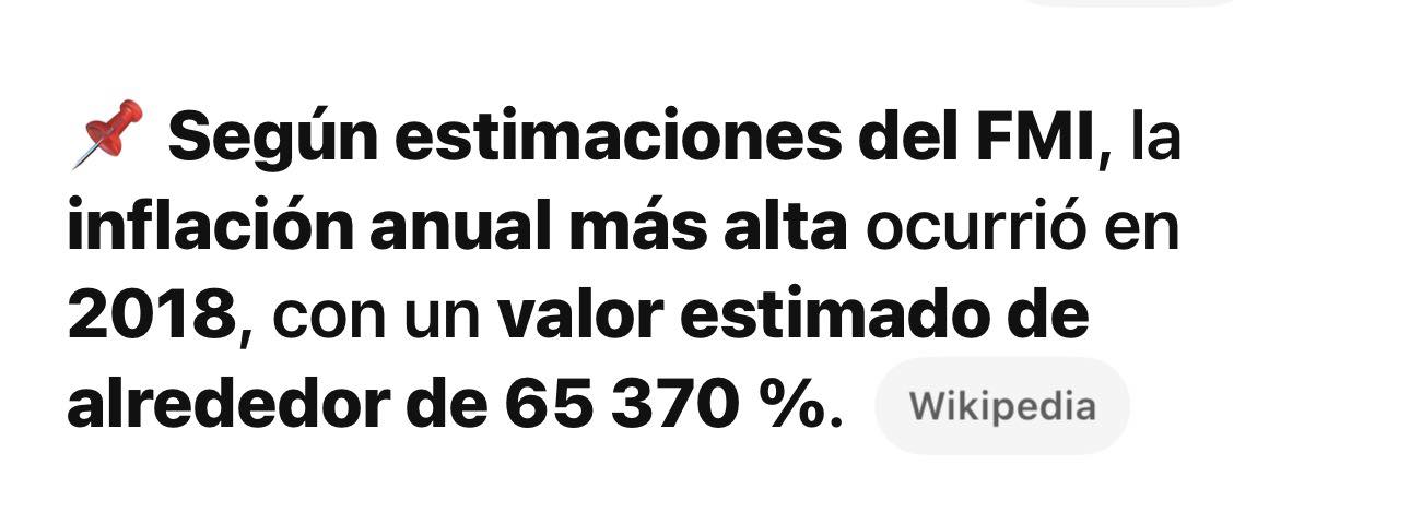 Lo cierto es que según el FMI la inflación más alta que registró Venezuela llegó a 65.360%.