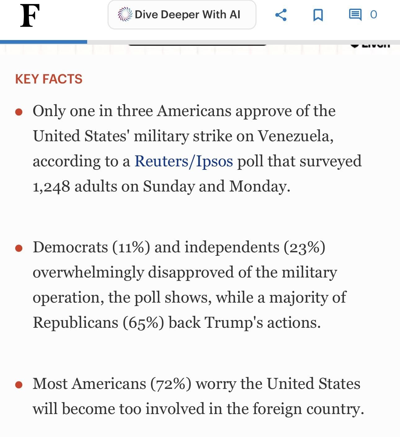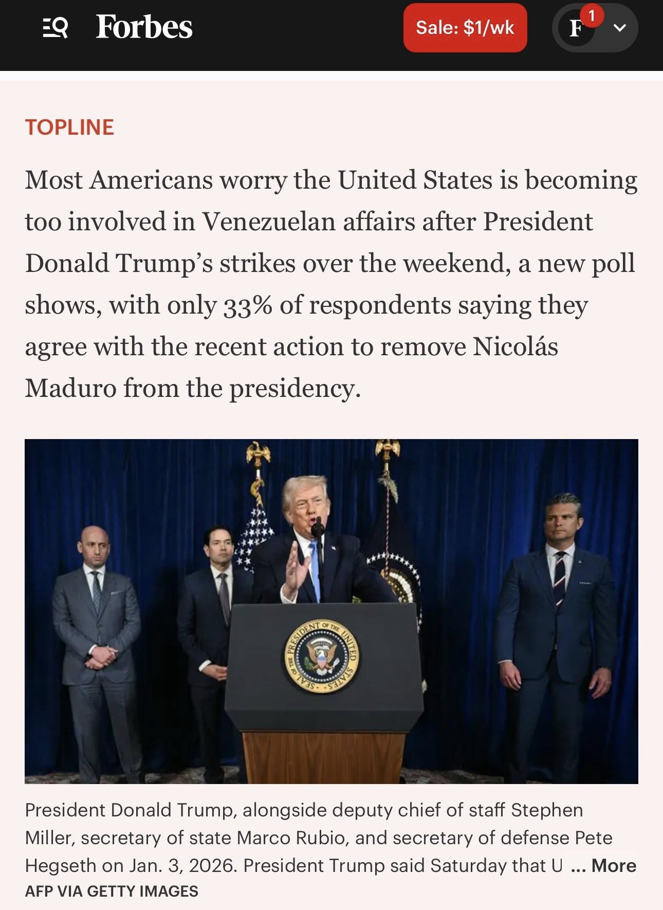 A los gringos no les gusta Trump entrometido, ambicioso y abusivo. Solo el 33% aprueba el ataque militar de Trump a Venezuela. Informe de Forbes. Basado en datos de una encuesta.
