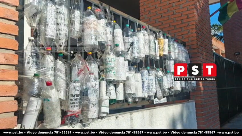 Padres de familia del módulo educativo Ovidio Santiesteban, ubicado en la zona norte de la ciudad, en el 4to anillo radial 26, se las ingenian para asegurar un cupo para sus hijos en el 1ro de primaria. Esta vez reemplazaron las tradicionales sillas encadenadas por botellas plásticas en las que colocan los nombres de los estudiantes y las amarran a la reja del establecimiento, formando una fila que simboliza el orden de inscripción.