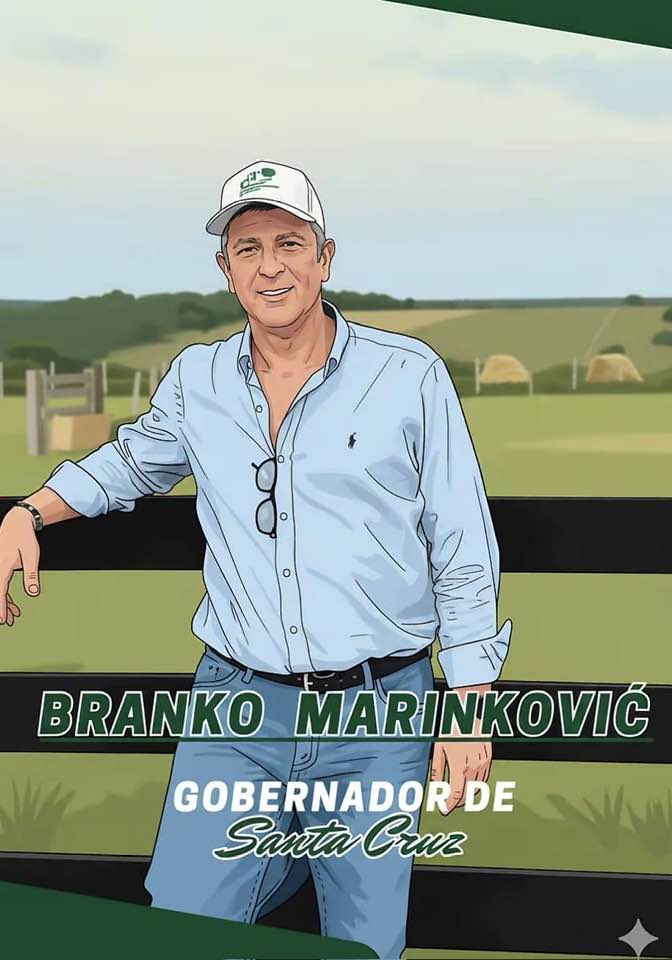 Branko y el campo. La imagen con la que se presenta para buscar la gobernación de Santa Cruz. Una sonrisa, la gorra, los lentes. Y el campo como marco. Para proyectase como hombre de producción y trabajo. Entró en carrera.