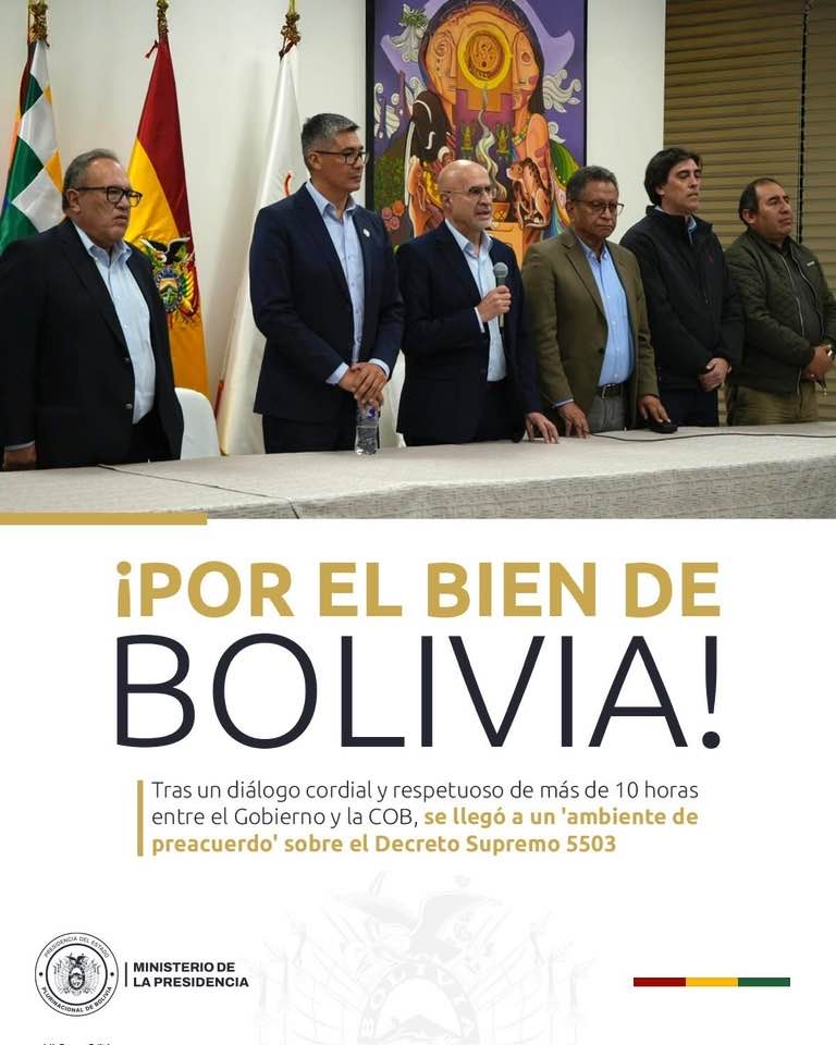 Hay preacuerdo gobierno – COB. Se acerca la solución. Para que el país siga trabajando y produciendo. Sin bloqueos ni paros. Para salir del fondo. Qué es tan urgente y necesario.