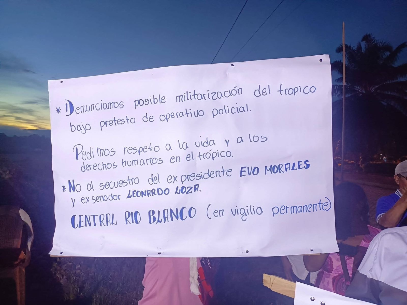 Dirigentes y bases sociales de la Central Río Blanco, afiliada a la Federación Mamoré Bulo Bulo, denunciaron la supuesta operación “Jema” que el Gobierno intentaría ejecutar en la región del Trópico de Cochabamba, donde también se encuentra la residencia del expresidente Evo Morales. Según los dirigentes, esta acción implicaría la movilización de fuerzas policiales y militares, lo que consideran una intromisión contra la población local. Ante esta situación, mantienen un punto de vigilia y llaman a sus miembros a estar alertas y movilizados para defender la zona.