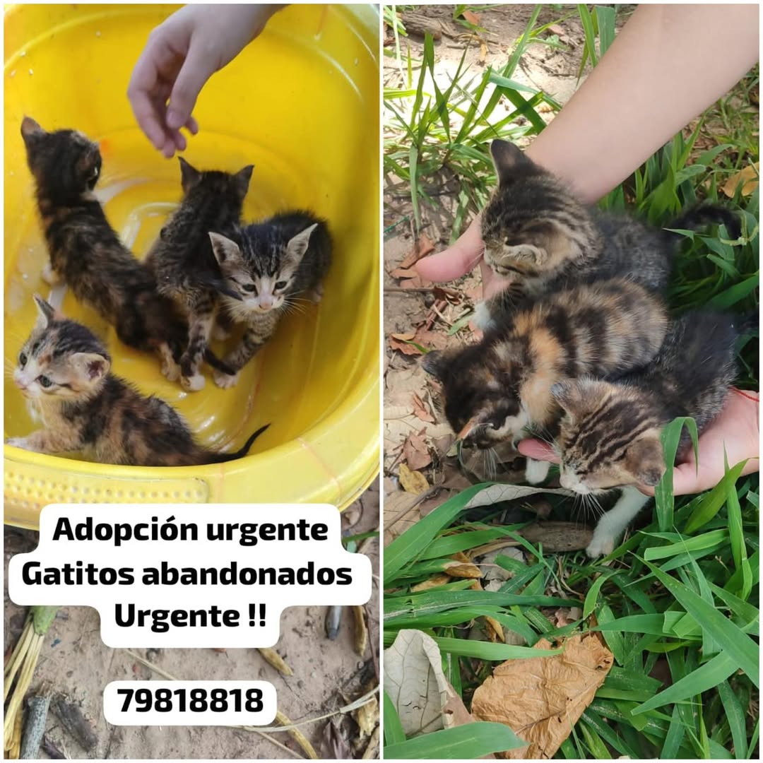 Una vecina de la avenida Beni y Quinto Anillo encontró a cinco gatitos recién nacidos abandonados en una cancha. Conmovida por la escena, los rescató y los llevó a su casa, pero no puede cuidarlos porque ya tiene varios perritos y el espacio es limitado.