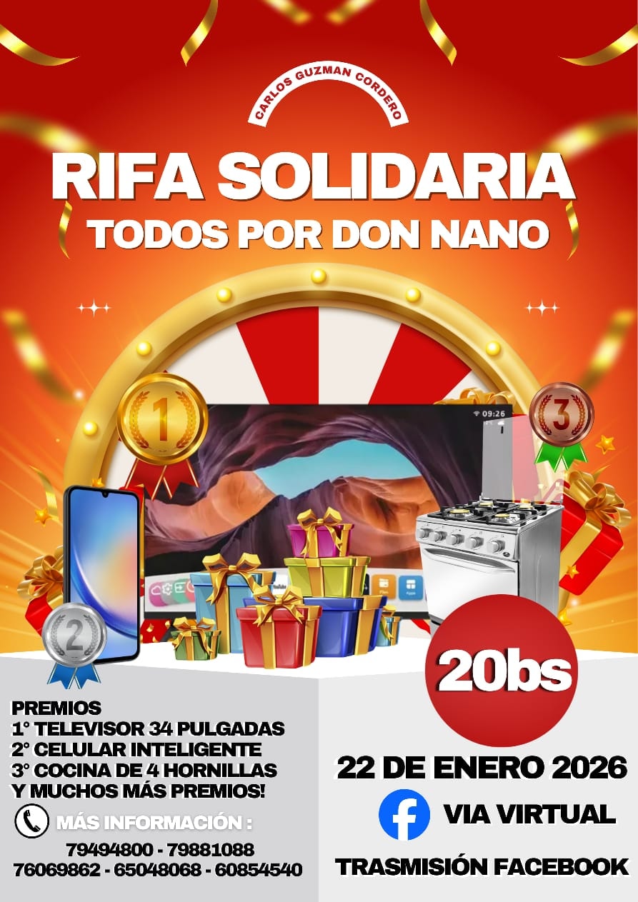 El costo de la rifa es de 20 bolivianos, un aporte pequeño que puede convertirse en una gran ayuda. El sorteo se realizará en vivo a través de redes sociales el 22 de enero de 2026, garantizando transparencia y confianza.