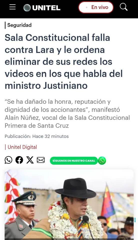 La justicia le ordena a Lara: elimine videos de sus redes. Por dañar honras ajenas sin fundamento.