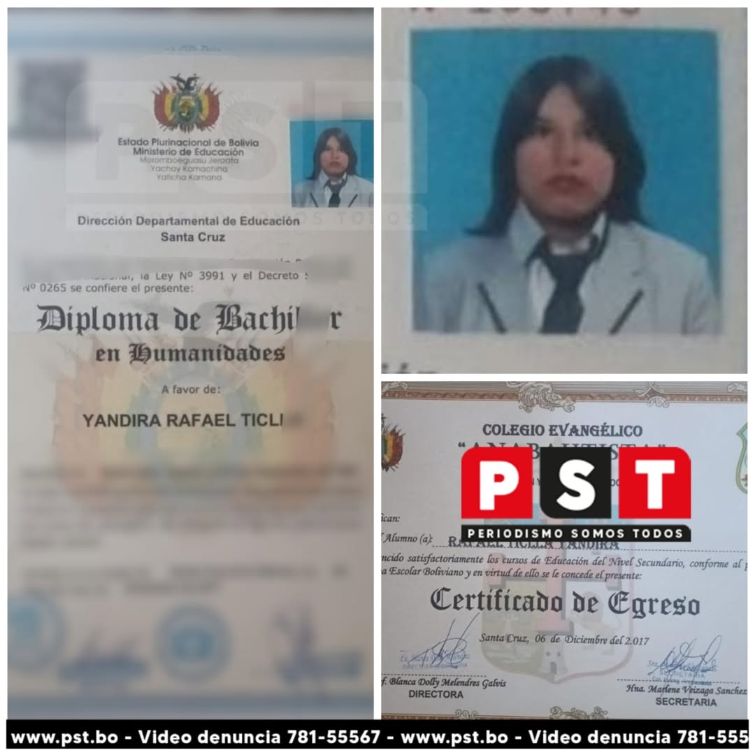 Yandira Rafael Ticlla, estudiante de enfermería, solicita ayuda para recuperar su título de bachiller, que extravió mientras se dirigía a la universidad junto a otros documentos importantes para su graduación. Entre los papeles perdidos se encuentran su pasantía en el Hospital Francés, notas académicas y documentos de su Servicio Rural en Cotoca, los cuales estaban guardados en una carpeta transparente.