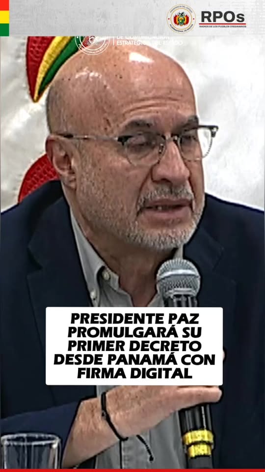 El ministro de la Presidencia, José Luis Lupo, anunció que el presidente Rodrigo Paz firmará su primer Decreto Supremo desde Panamá mediante el uso de su dispositivo de firma digital.