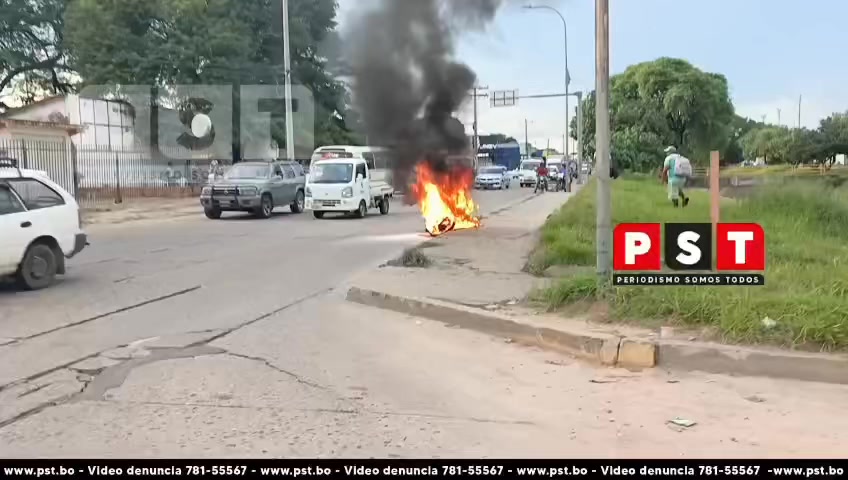 Una motocicleta se incendió la tarde de este martes en el cuarto anillo de la doble vía a La Guardia, frente a Hipermaxi.