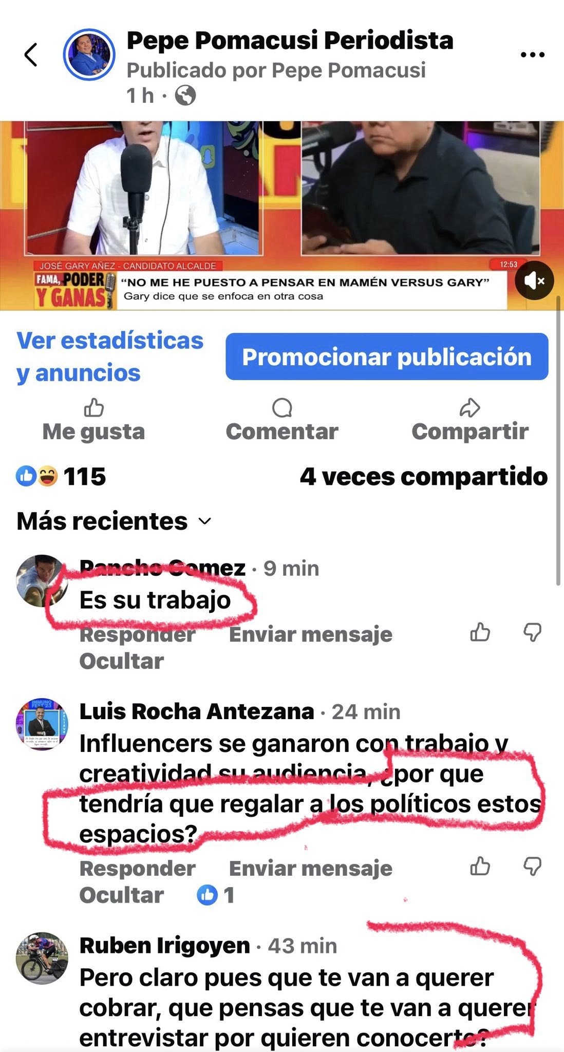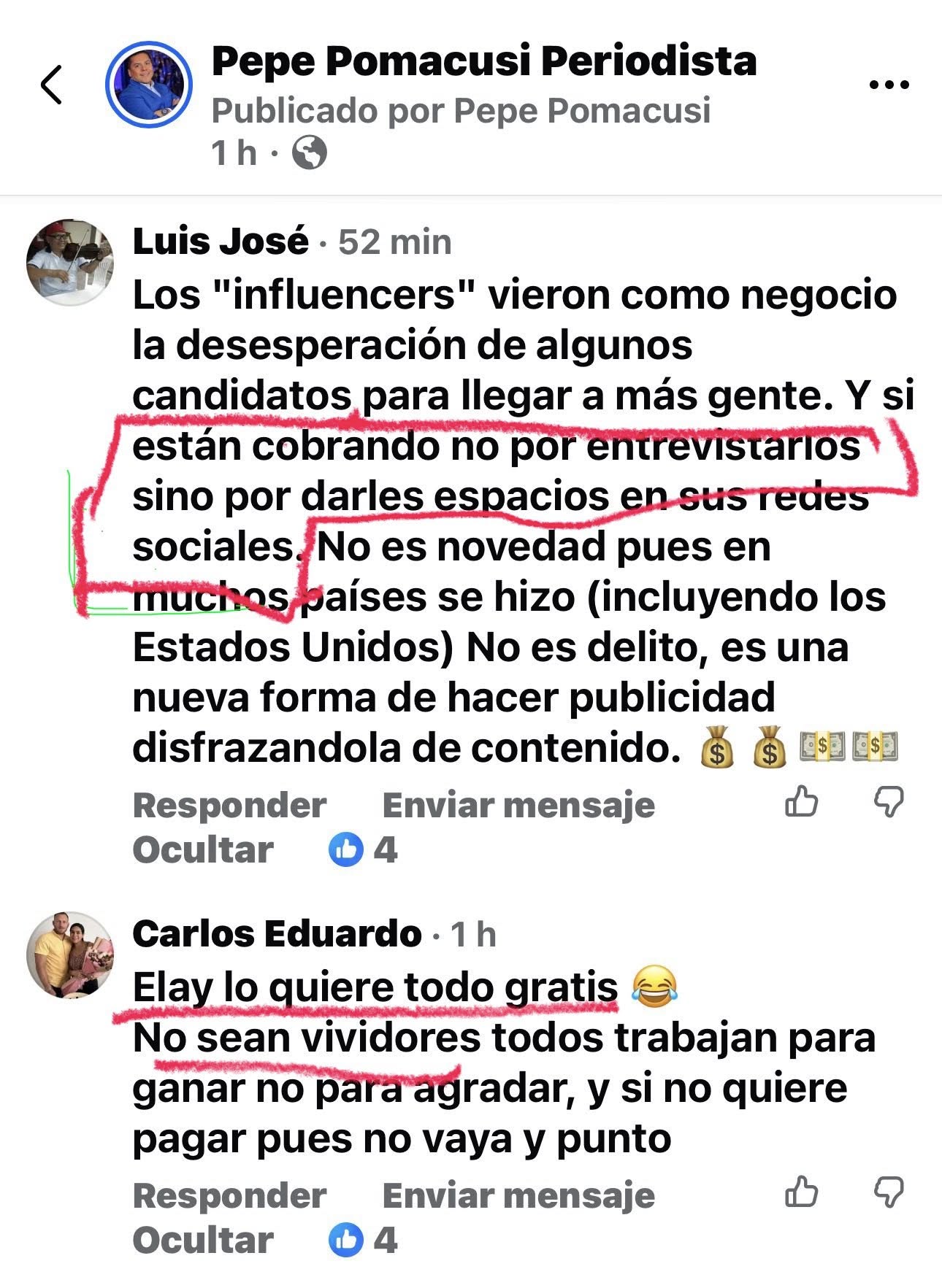 • “Te están cobrando por sus espacios en sus redes sociales”.