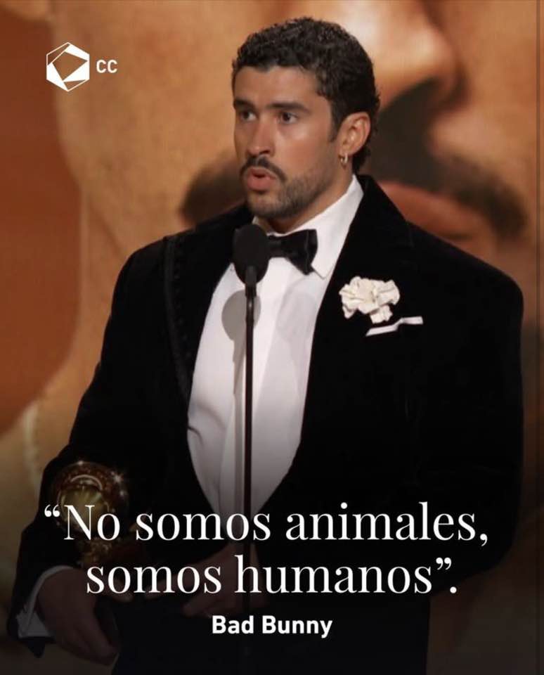 “No somos animales, somos humanos. Fuera Ice”. Bad Bunny, ovacionado de pie tras hablar bueno y breve. Y valiente.