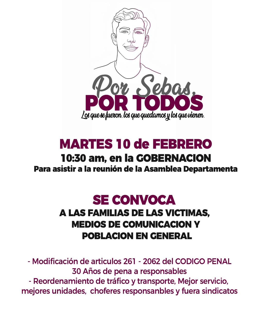 Familiares y amigos de Sebastián Vespa Montero, joven de 21 años cuya vida fue arrebatada por una imprudencia evitable, convocan a la sociedad civil, autoridades y medios de comunicación este martes 10 de febrero a las 10:30 a.m. en la Gobernación, para exigir modificaciones a los artículos 261 y 2062 del Código Penal —que hoy permiten penas de solo 3 años y bajas indemnizaciones— y proponen un reordenamiento del transporte urbano de Santa Cruz, con mejores unidades, choferes responsables y un sistema más seguro y humano. La movilización busca que candidatos a alcaldes se comprometan con estas reformas y que la voz de las víctimas, silenciosa por años, sea finalmente escuchada.