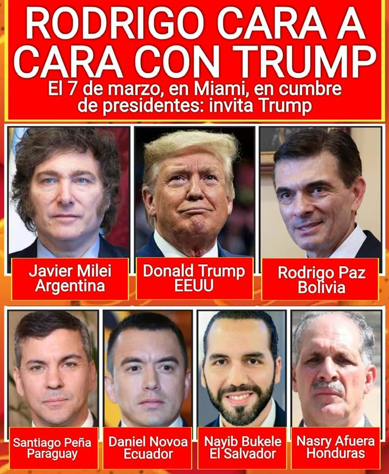 Trump invita a Rodrigo a Miami. Cumbre presidencial. Será su primer cara a cara. Va a estar también Milei. Y Bukele. Bolivia cambia de amigos.