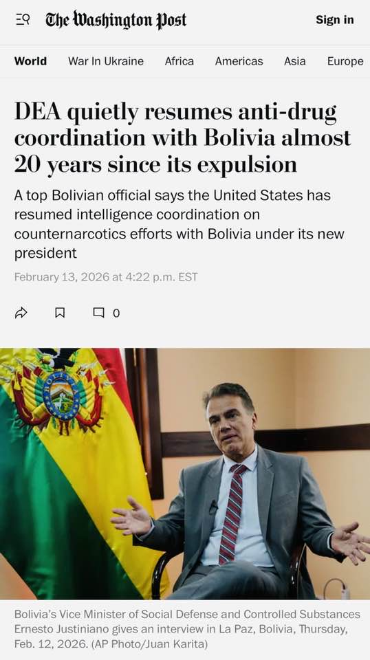 The Washington Post se ocupa de Bolivia. Y destaca el retorno de la coordinación Bolivia – EEUU en la lucha antidroga.
