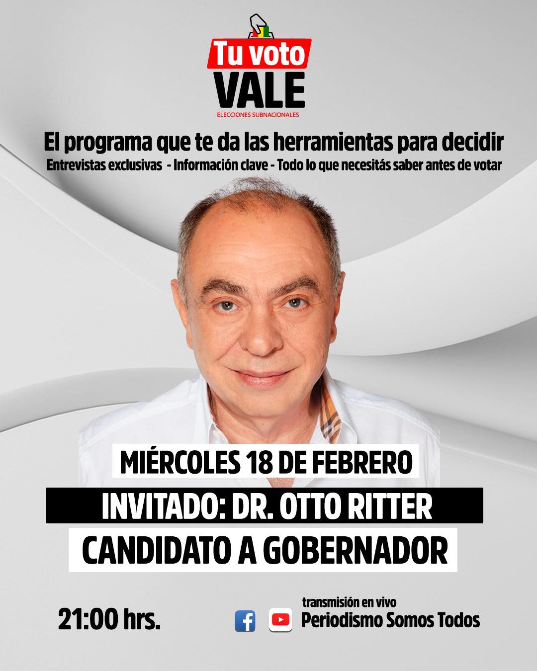 En vivo hoy el doctor Otto Ritter, abogado reconocido, exconcejal cruceño y hoy candidato a la Gobernación de Santa Cruz por la agrupación Santa Cruz para Todos.