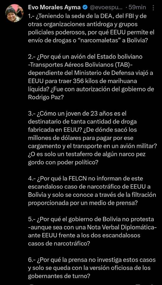 1. ¿Por qué Evo se esconde y no se presenta ante la justicia para responder por las acusaciones de estupro, peores que las de un pastor que ya está en Palmasola?