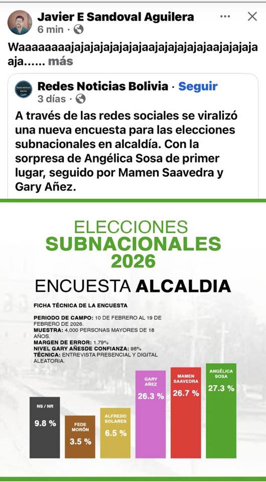 ¿Risa, brinda, indignación? Qué te provoca esta “encuesta”?Categorías NoticiasEtiquetas , Facebook, Pepe Pomacusi Periodista 23/02/2026 Fuente: Pepe Pomacusi Periodista