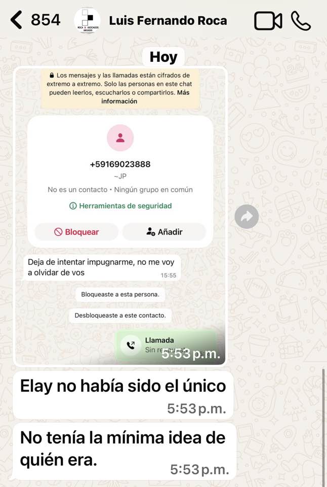 Otra amenaza de Jp. “Dejá de intenta impugnarme, no me voy a olvidar de vos”.