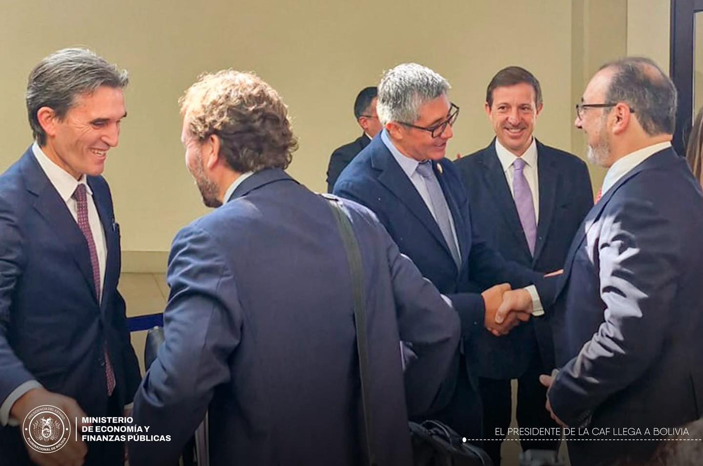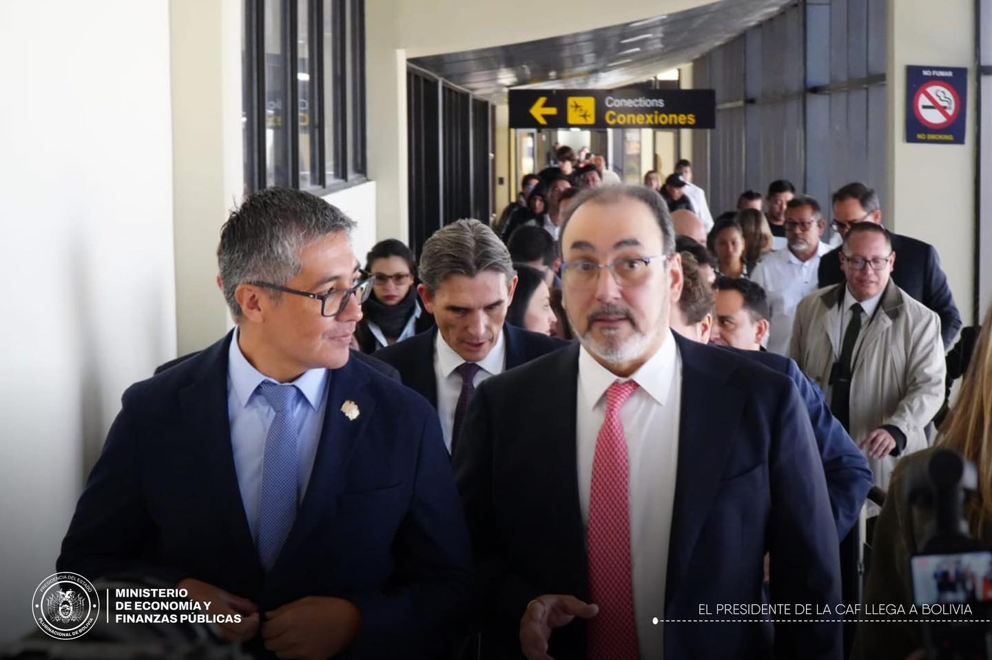Una comitiva oficial del Gobierno nacional recibió en el Aeropuerto Internacional de El Alto al presidente del Banco de Desarrollo de América Latina y el Caribe (CAF), Sergio Díaz-Granados, quien cumple una visita oficial al país. La delegación estuvo encabezada por el ministro de Economía y Finanzas Públicas, José Gabriel Espinoza Yáñez, junto al viceministro de Relaciones Exteriores, la Jefa de Gabinete y la Directora General de Ceremonial del Estado.