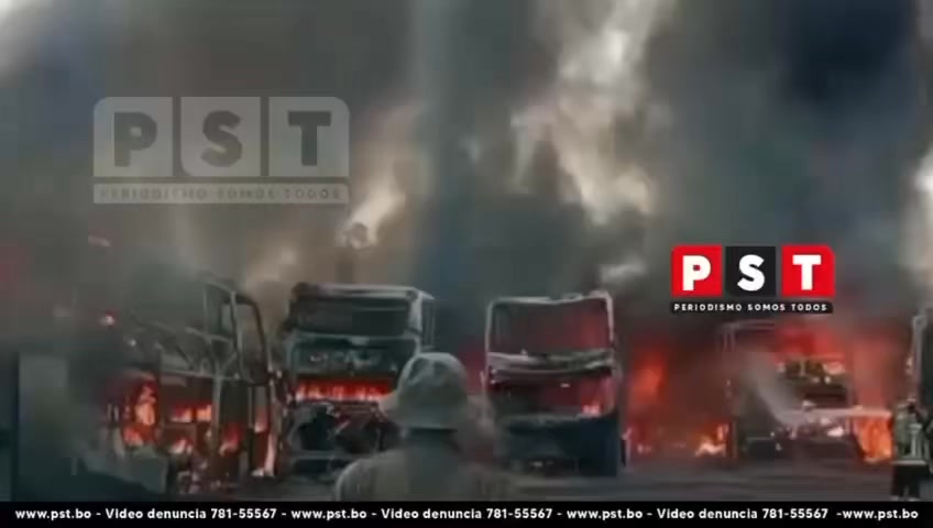 Un voraz incendio se registró en un taller mecánico ubicado en inmediaciones de la nueva terminal del departamento de Oruro, donde al menos seis buses de transporte interdepartamental fueron alcanzados por las llamas y quedaron reducidos a chatarra. La situación fue dramática: varios vecinos intentaron evitar que el fuego se propague hacia sus viviendas hasta la llegada de los bomberos.
