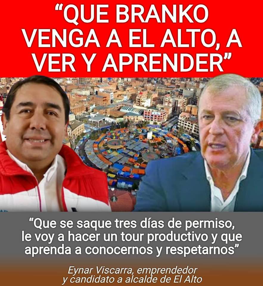 Desafía a Branko a conocer y a respetar a El Alto. “De emprendedor a emprendedor, lo desafió a que venga a El Alto a ver y a aprender”