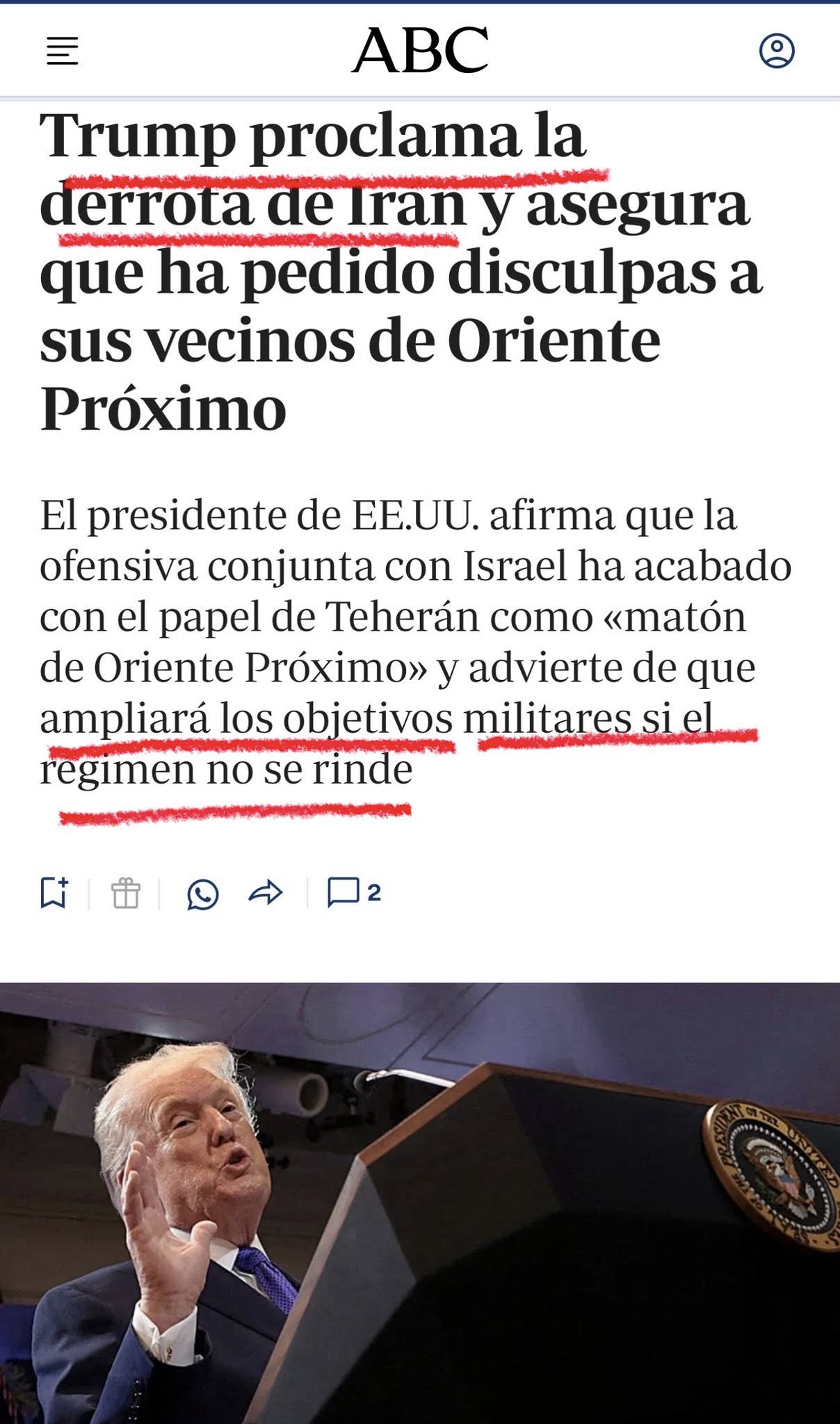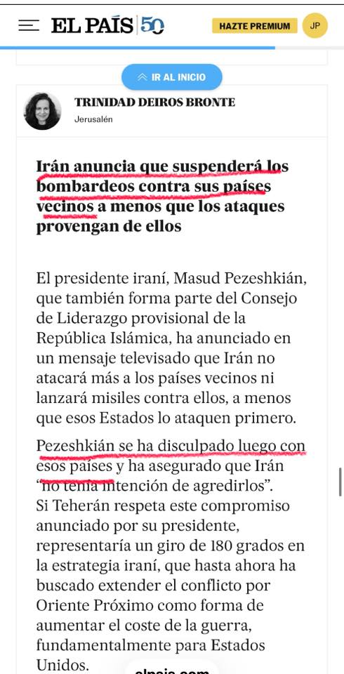 Trump ha vuelto ha demostrar el poderío bélico de EEUU: ayer atacó con contundencia a Irán, la destrucción total se hacía inminente y eso provocó que Irán moderara su discurso, detuviera sus misiles y pidiera disculpas a sus vecinos, aliados de EEUU.