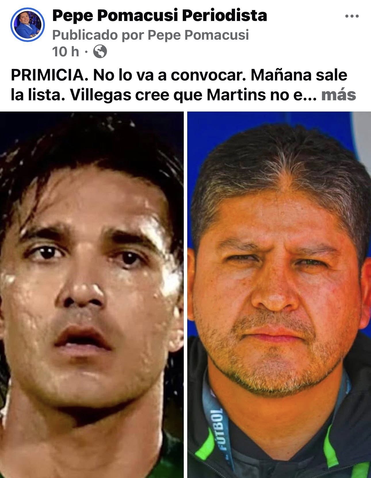 Primicia confirmada, Villegas no convocó a Martins.