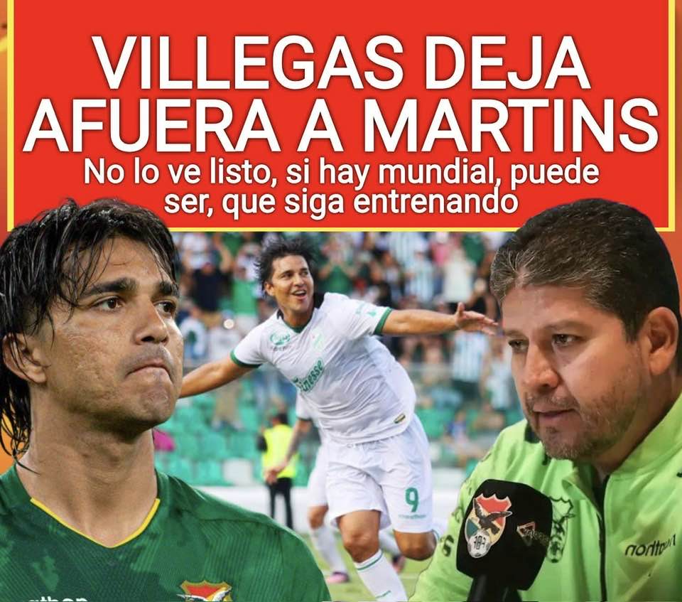 Si Boliva va al mundial, puede ser que Martins sea convocado. Villegas no lo ve listo ahora. Le pide que siga entrenando.