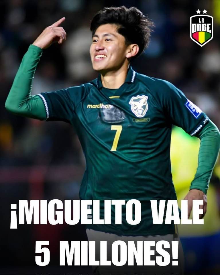 El jugador más caro de Bolivia hoy. Miguelito vale 5 millones de dólares. Se acaba de publicar su nueva cotización.