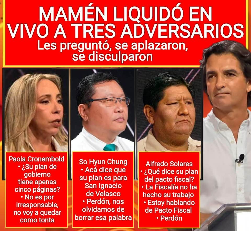 Épico: Mamén liquidó en vivo a tres adversarios. Los expuso en pleno debate. Por presentar cualquier cosa como plan de gobierno, por copiar un plan de gobierno y por no saber.