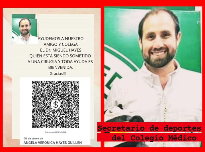 El médico Miguel Hayes está internado en la Caja Nacional y su familia está pidiendo donantes de sangre.