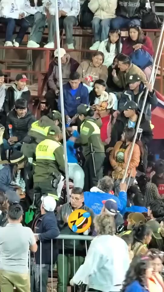 MUJER SE RESISTE A DESALOJO POLICIAL EN GRADERÍAS DURANTE CONVITE EN ORURO