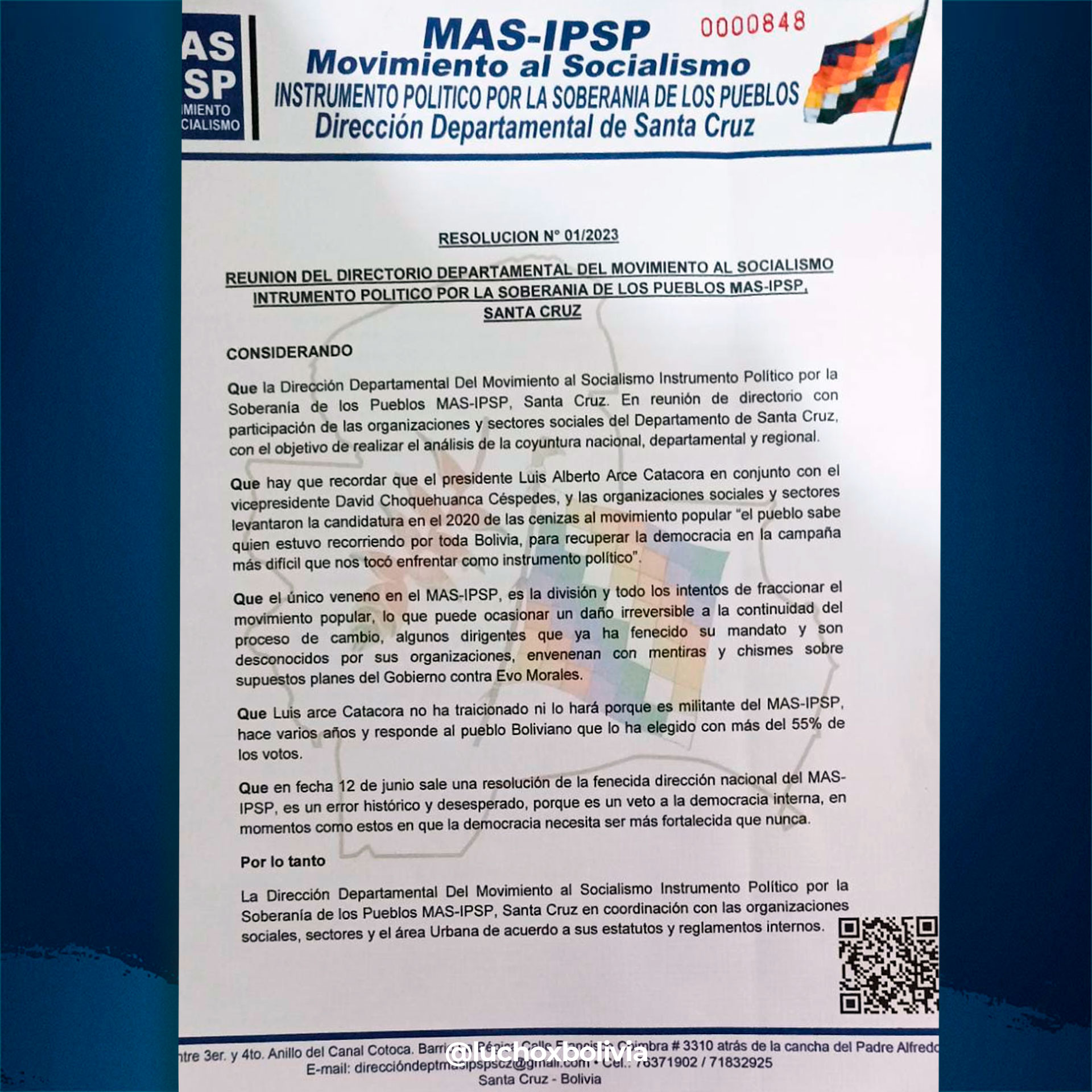 Dirigencia nacional del MAS cuestiona al presidente Arce y en Santa Cruz le expresan su apoyo 15/06/2023