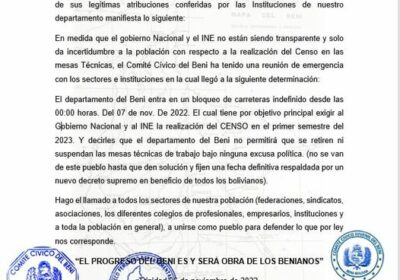 Protestan en puertas de la Universidad Autónoma del Beni, lugar donde se instaló la mesa técnica , exigen que de una vez se defina la fecha del censo 06/11/2022